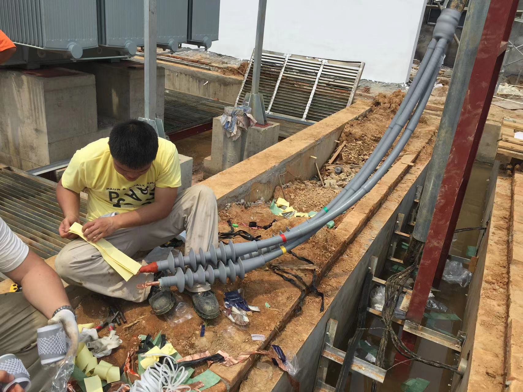 苏州隆诚冷热缩制品有限公司的工作人员正在安装冷缩电缆终端头及插拔头,苏州隆诚冷热缩制品有限公司是一家拥有专业团队的电缆附件厂家,专业生产电缆附件、冷缩电缆附件、热缩电缆附件、电缆终端头定制的公司。在冷缩电缆终端头及插拔头安装的过程中,工作人员严格按照流程和步骤实施,整个安装过程非常的顺利,并且圆满成功。欢迎您来公司参观,我们竭诚为您服务!咨询电话::1362-1562-862